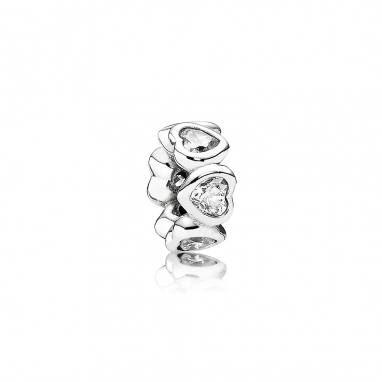 Pandora zilveren spacer Sparkling Hearts bestaande uit een ring van heldere zirkonia hartjes.