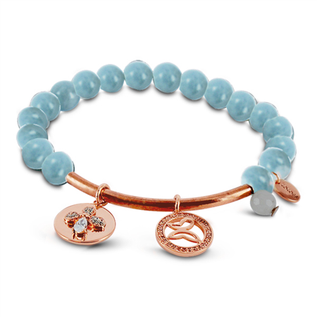 Bedel rekarmbandje van blauwe Aquamarijn kralen*