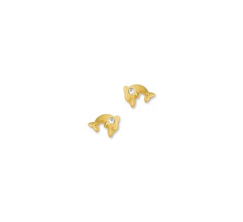 Gouden kinderoorbellen Dolfijntjes met zirkonia.