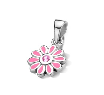Zilveren Bloemhangertje Roze