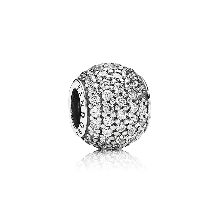 Pandora bedel met heldere zirkonia steentjes, pavé gezet. Uit de kerstcollectie van 2012.