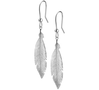 Zilveren oorhangers met zilveren veren (franse haak).