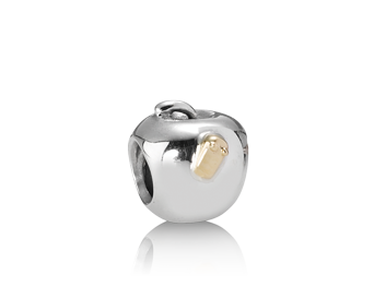 Zilveren Pandora bedel, Appel met 14 karaats gouden rupsje. Van €59,00 voor €49,00!