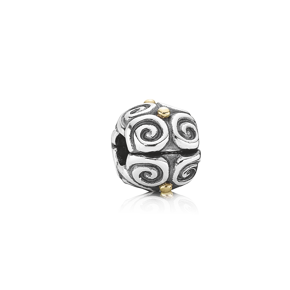 Zilveren Pandora clip bedel met 14 karaats gouden nopjes, te gebruiken op de schroefgedeeltes van een Pandora armband. De bedel fungeert zo als stopper voor de andere bedels. Ook heel mooi aan een Pandora armband voor clipbedels (klik op de homepage, rechtsonderin, op het merklogo van Pandora voor o.a. clipbedelarmbanden).